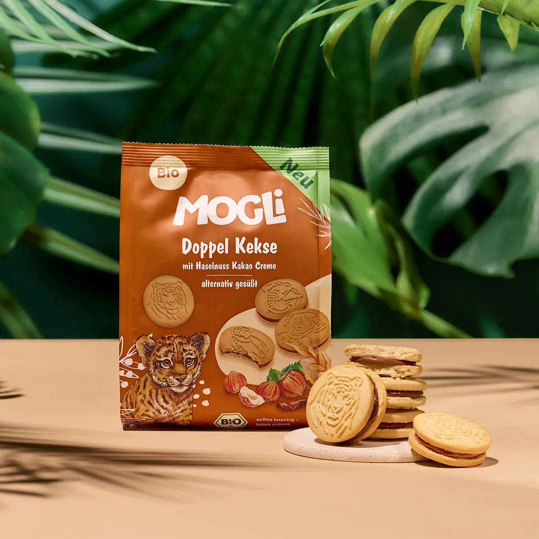 Ob in der Brotdose, unterwegs oder als kleine Stärkung nach dem Spielen: Die MOGLi Doppel Kekse Kakao verbinden Spaß, echten Geschmack und Bio-Qualität. So wild darf naschen sein – ROAAR!
