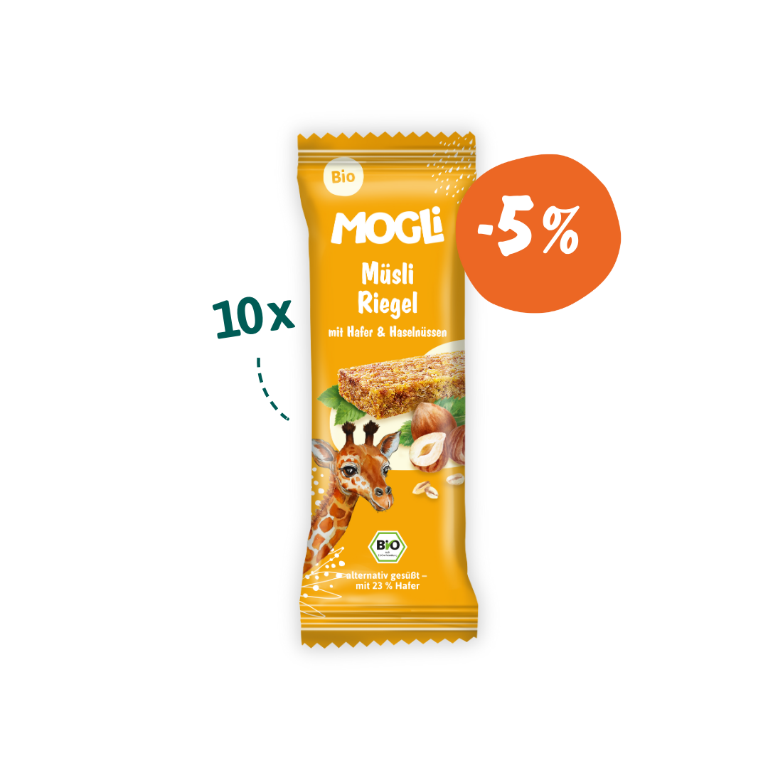 Der MOGLi Müsli Riegel ist der perfekte Bio Kindersnack für unterwegs. Mit 23 % Hafer, gerösteten Haselnüssen und Sesam liefert der Riegel wertvolle Energie für euer Abenteuer in der Natur. Mild gesüßt mit feinem Blütenhonig und ganz ohne künstliche Aromen überzeugt er kleine wie große Snackfans mit seinem natürlich-nussigen Geschmack. Und das in bester Bio-Qualität – denn alle Zutaten stammen aus kontrolliert biologischem Anbau. Ob in der Brotbox oder bei einem Picknick im Grünen: Der Müsli Riegel von MOGLi macht Pausenzeit zur Genusszeit und bringt Kinder mit jedem Biss der Natur ein Stückchen näher. Denn MOGLi steht für die natürlich leckersten Kindersnacks.
