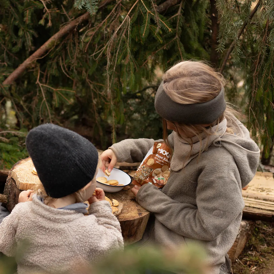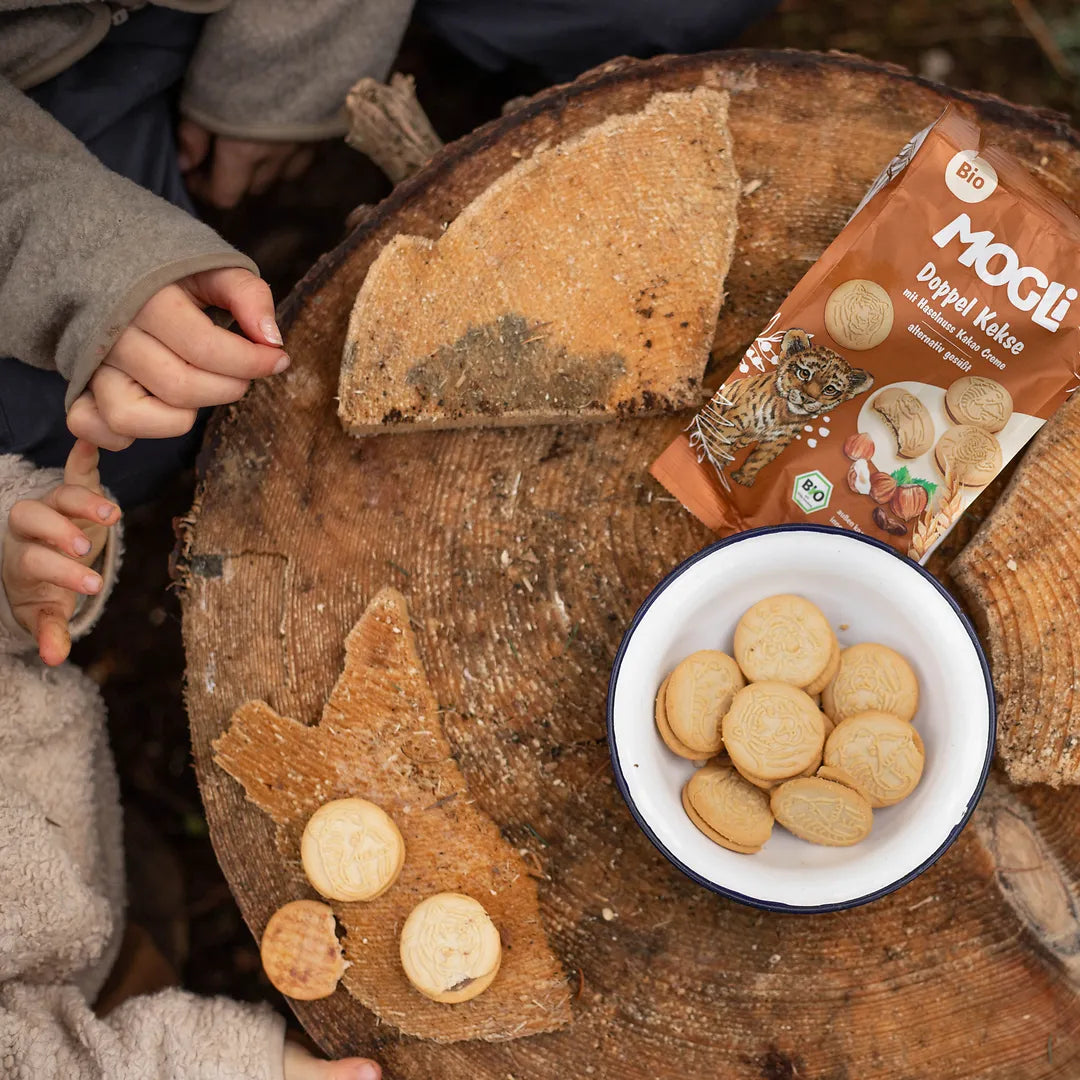 Ob in der Brotdose, unterwegs oder als kleine Stärkung nach dem Spielen: Die MOGLi Doppel Kekse Kakao verbinden Spaß, echten Geschmack und Bio-Qualität. So wild darf naschen sein – ROAAR!